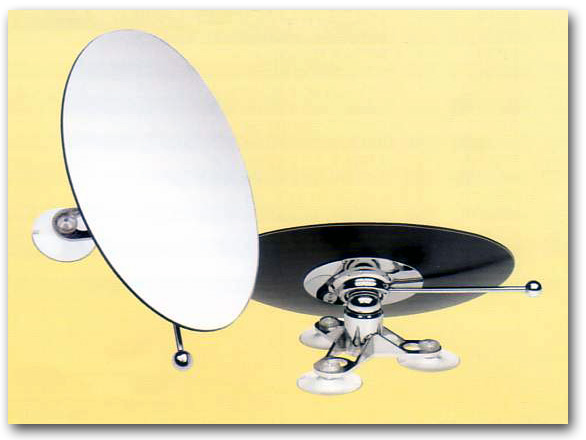 - Multifunktionsspiegel: Standspiegel mit Saugnapf-Wandhalterung, so daß der Spiegel sowohl als Standspiegel als auch als Wandspiegel Verwendung findet