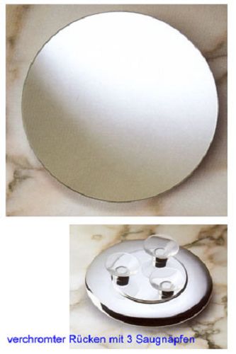Saugnapfspiegel zur sicheren Anbringung auf allen Spiegelflächen oder glatten Flächen (z.B. Fliesen) durch Saugnapf, verchromt