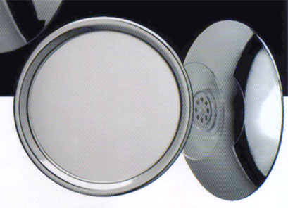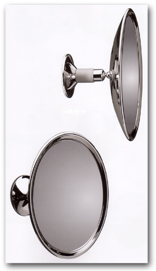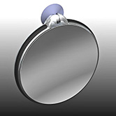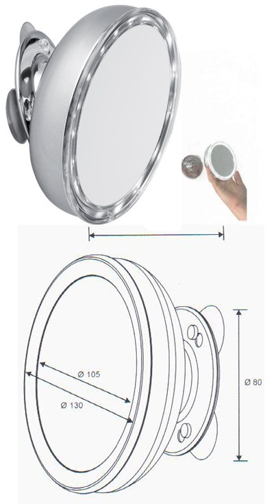 Saugnapfspiegel zur sicheren Anbringung auf allen Spiegelflächen oder glatten Flächen (z.B. Fliesen) durch 3 Saugnäpfe. Chromeinfassung und Chromrücken