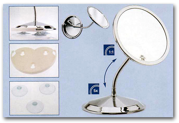 - Kosmetikspiegel mit 5 - facher Vergrößerung und einem zusätzlichen Normalspiegel in der Unterseite des Standfusses
